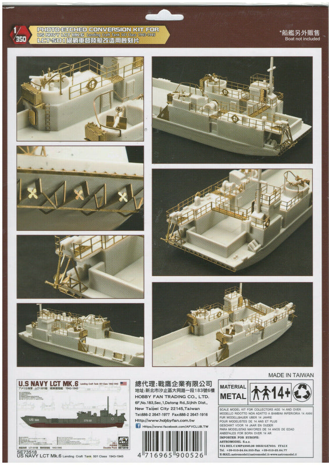 Vendor:AFV CLUB1/350 AG35052 PHOTO-ETCHED CONVERSION KIT for SE73518 US LCT-501 CLASS by AFV CLUB 1/350 Photo-Etched Conversion Kit for US Navy LCT MK.6 Landing Craft Tank 501 Class 1943-1945