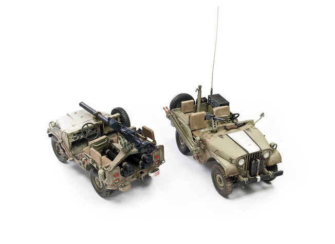 Vendor:AFV CLUB1/35 IDF M38A RECO JEEP AND FIRE SUPPORT JEEP (2 KITS SET) SIYUR & TOLAR by AFV AF35S99 AFV-AF35S99 1/35 IDF M38A RECO JEEP AND FIRE SUPPORT JEEP (2 KITS) SET 4x4 M38 was introduced to Israel and immediately became one of IDF standard work horse. 1/35 1/4-ton...