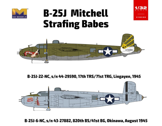 Vendor:Hong Kong Model1/32 B-25 J MITCHELL "STRAFING BABE" with NOSE WEIGHT - HONG KONG MODEL Hong Kong Model HKM-01E036 1/32 B-25J Mitchell Strafing Babe w/ Nose Weight This is a New and Un-open Plastic Model kit of the Hong Kong Model 1/32 B-25J Mitchell Strafing...