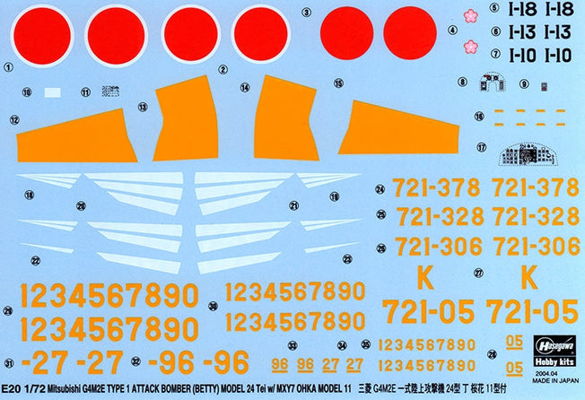Vendor:Hasegawa1/72 BETTY 24 TEI W/OHKA II HASEGAWA 00550 1/72 scale plastic model kit of the Betty 24 Tei with Ohka II.