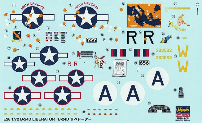 Vendor:Hasegawa1/72 B-24D LIBERATOR HASEGAWA 1/72 scale U.S. Army Air Force Bomber by HASEGAWA JAPAN Unassembled Plastic Model Kit - Glue & Paint not Included
