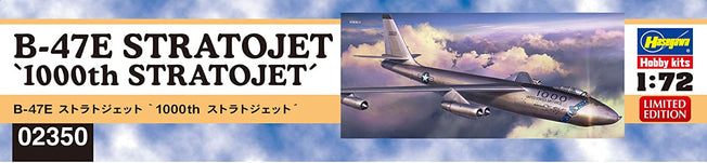 Vendor:Hasegawa1/72 B-47E STRATOJET '1000th STRATOJET' by HASEGAWA 02350 1/72 Scale U.S. Air Force Bomber - Unassembled Plastic Model Kit by Hasegawa Japan - Length 471mm - Wing Span 491mm - Parts 166pcs - Glue & Paint not Included