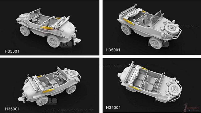 Vendor:Hero Hobby1/35 GERMAN SCHWIMMWAGEN TYPE 166 1/35 scale plastic model kit of the Type 166 German Schwimmwagon.