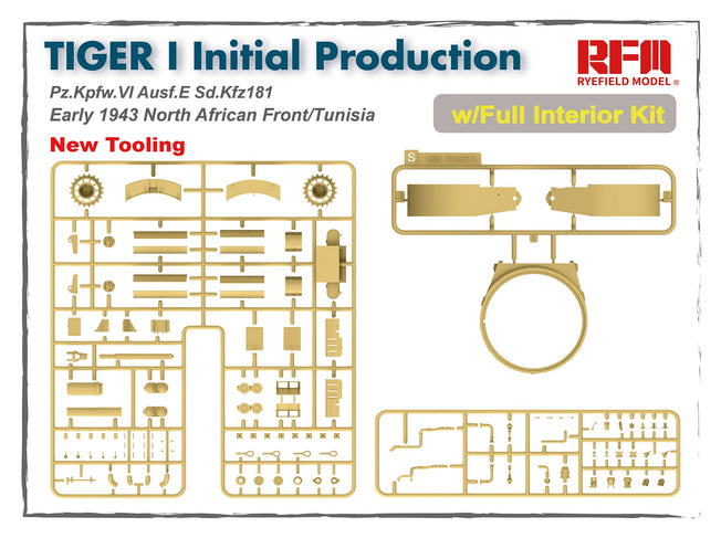 Vendor:Rye Field Models1/35 TIGER I INTIAL PRODUCTION EARLY 1943 w/FULL INTERIOR and TRACKS 2021 New release from RyeField Model. This is the state of the art, most up to date model kit for 1/35 Tiger I available with full interior including engine compartment...