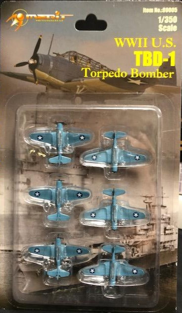 Vendor:Merit International1/350 WWII U.S. TBD-1 TORPEDO BOMBER (SET OF 6) - MERIT INT'L 1/350 scale model of 6 TBD-1 torpedo bombers, pre-built and pre-painted. Product Discontinued. *** FINAL SALES ***