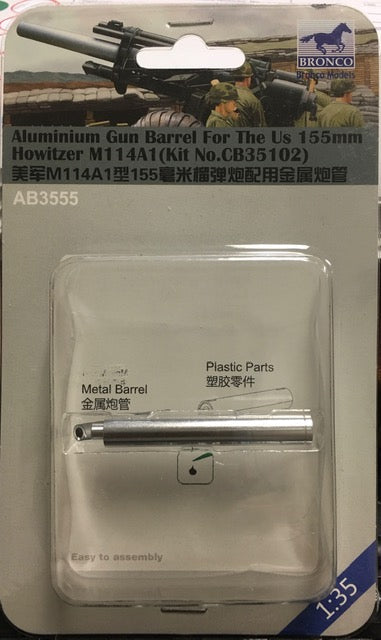 Vendor:Bronco Models1/35 ALUMINIUM GUN BARREL FOR THE US 155mm HOWITZER M114A1 (Kit No.CB35102) BY BRONCO MODELS Aluminum gun barrels for 1/35th scale 155mm Howitzer M114A1 by Bronco Models.