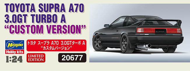 Vendor:HasegawaHasegawa Toyta Supra A70 3.0GT Turbo A "CUSTOM VERSION" Limted Edition Hasegawa 20677 1/24 Toyota Supra A70 3.0GT Turbo A Custom Version Plastic Model Show off your running with this serious tune. Custom version with additional parts. Set rear wing, large...
