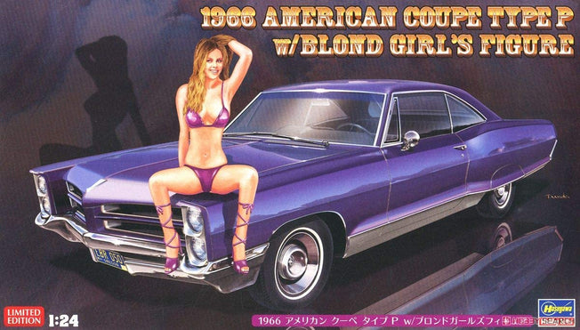Vendor:Hasegawa1/24 1966 AMERICAN COUPE TYPE HASEGAWA 52224 1/24 scale plastic model kit of a 1966 American classic coupe. Unassembled Plastic Model Kit - Glue & Paint not Included.