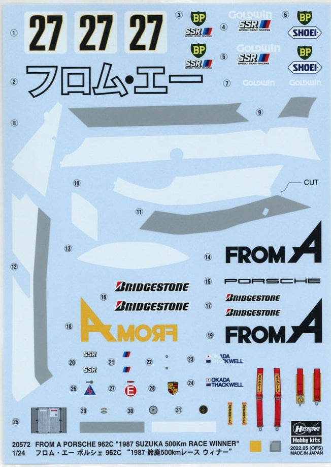 Vendor:Hasegawa1/24 "From A" Porsche 962C 1987 SUZUKA 500Km WINNER Hasegawa HAS20572 1/24 From A Porsche 962C 1987 SUZUKA 500Km WINNER - US Seller Reissue of the popular Group C "FROM A" race car in the Porsche 962C race car family Typical...
