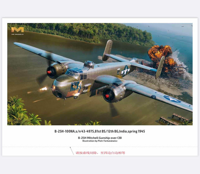 Vendor:Hong Kong Model1/32 B-25H Mitchell Gunships over CBI by Hong Kong Model This is an update tooling kit with all new box art and markings. B-25H may be the most armed aircraft in WWII. Besides her usual armament of 8 x .50...