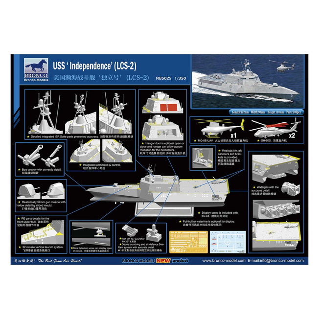 Vendor:Bronco Models1/350 USS LCS-2 'INDEPENDENCE' BRONCO MODELS NB5025 1/350 scale plastic model kit of the USS Independence (LCS-2).